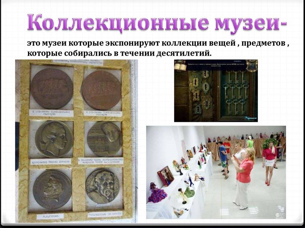 это музеи которые экспонируют коллекции вещей , предметов ,которые собирались в течении десятилетий.