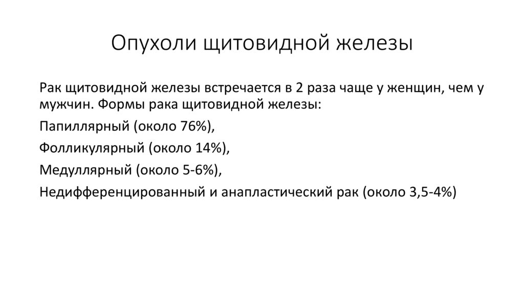 Опухоли щитовидной железыРак щитовидной железы встречается в 2 раза чаще у женщин, чем у