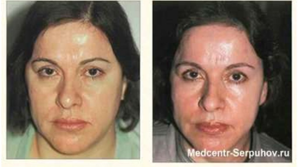 половине туловища, шее, лицу. Волосы больных становятся