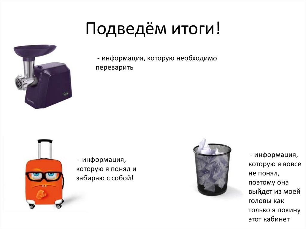 Подведём итоги!- информация, которую необходимо