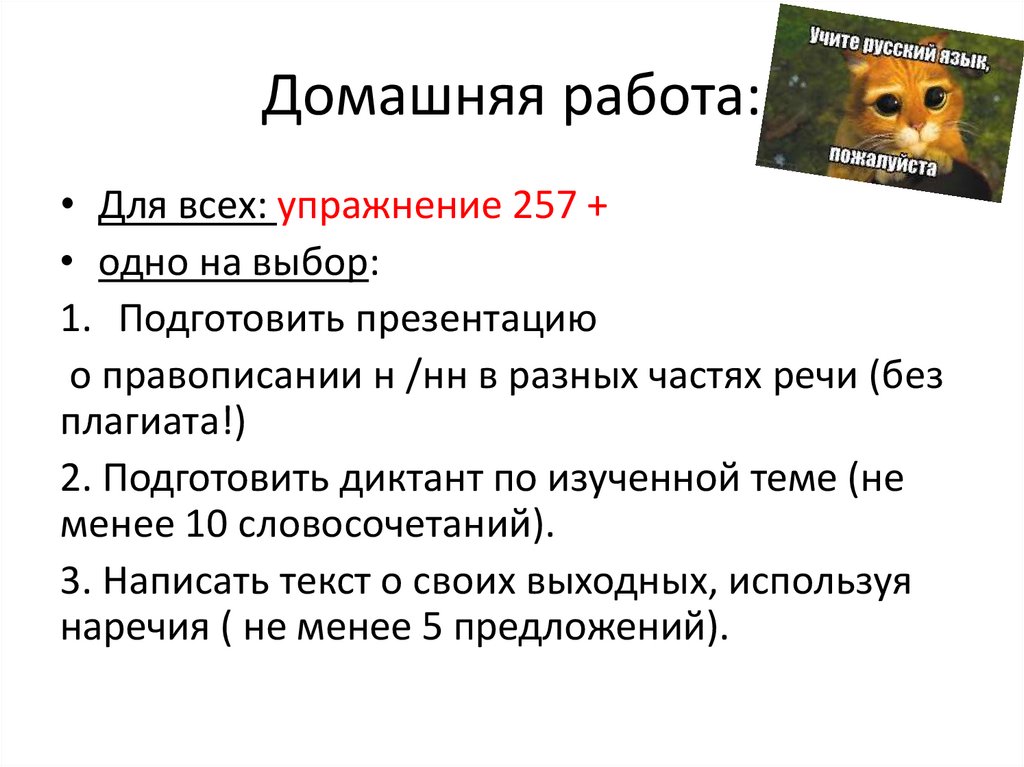 Домашняя работа:• Для всех: упражнение 257 +