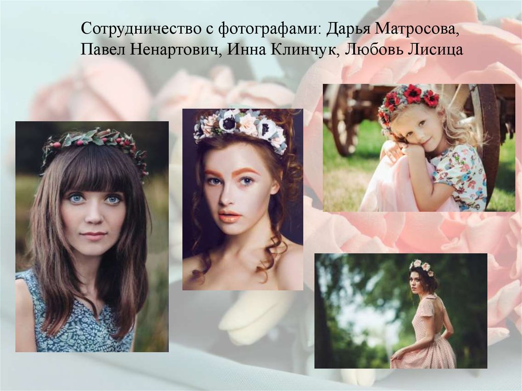 Сотрудничество с фотографами: Дарья Матросова,Павел Ненартович, Инна Клинчук, Любовь Лисица