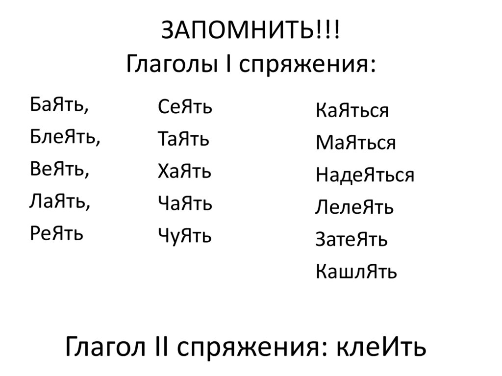 ЗАПОМНИТЬ!!!Глаголы I спряжения: