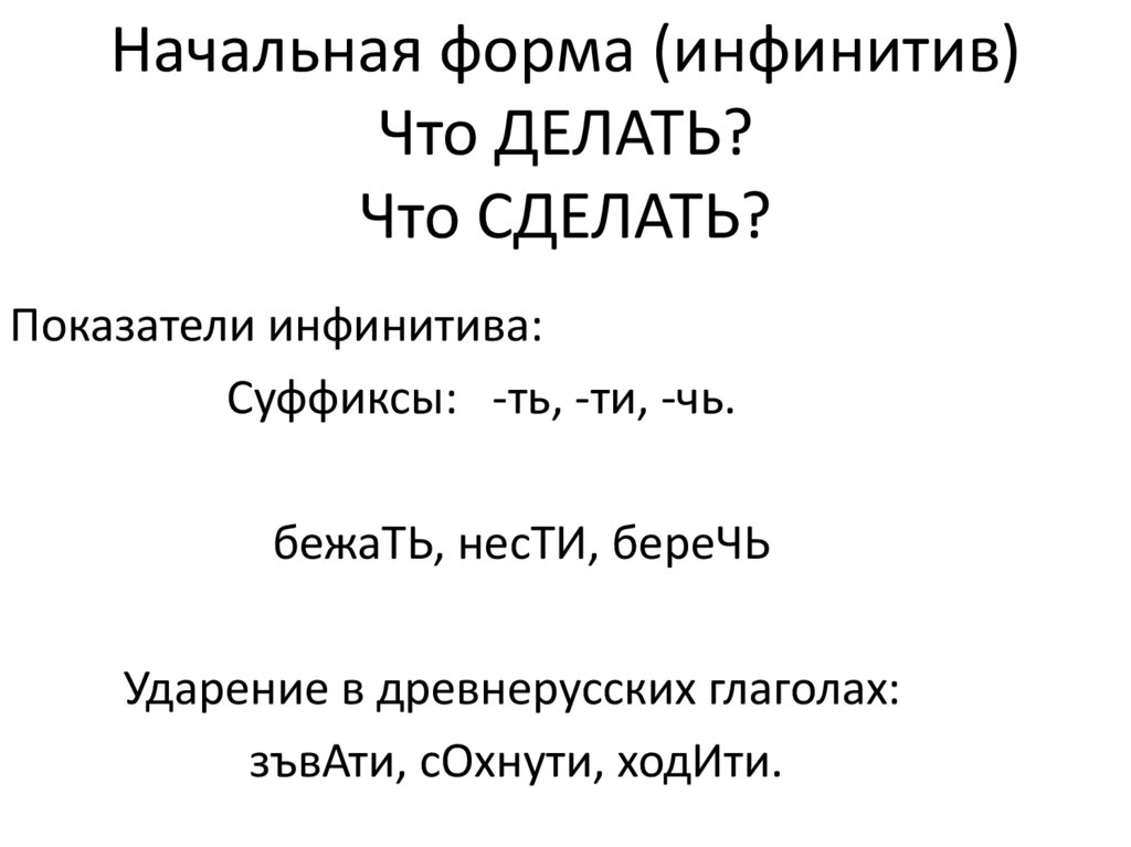 Начальная форма (инфинитив)Что ДЕЛАТЬ?