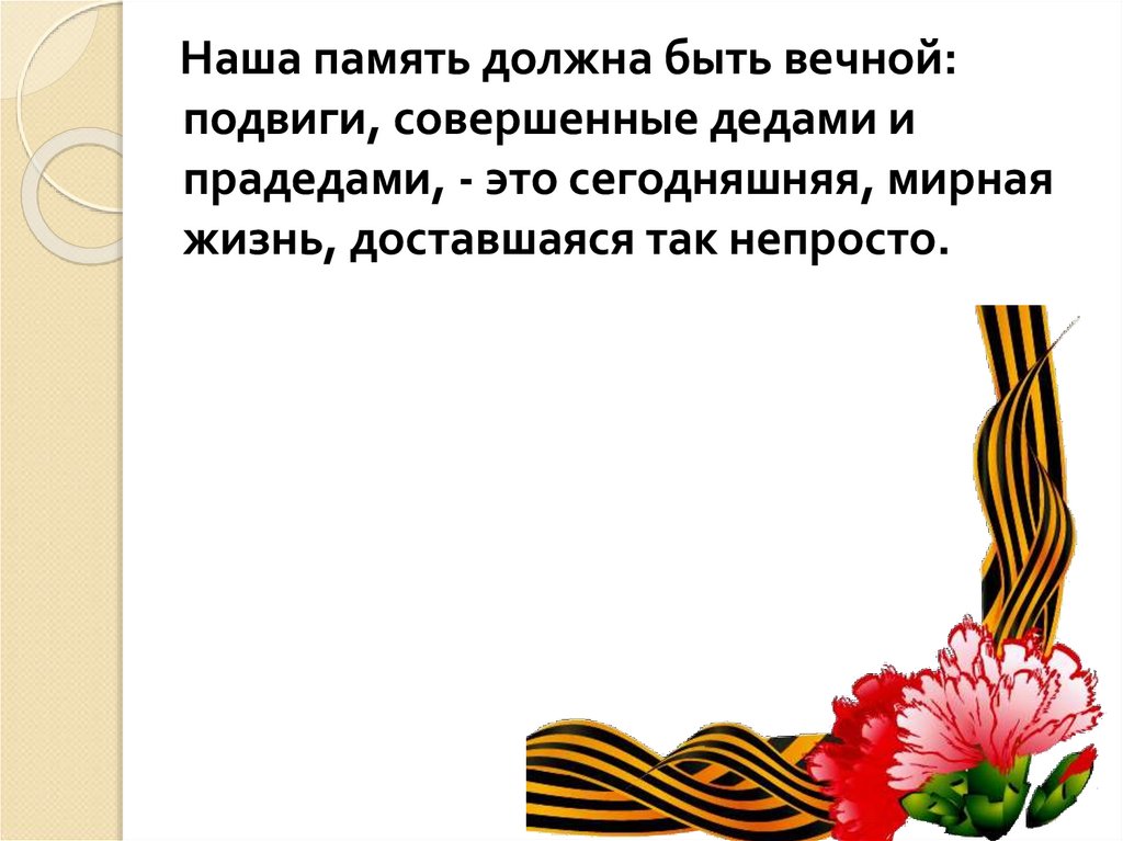 Наша память должна быть вечной:подвиги, совершенные дедами и
