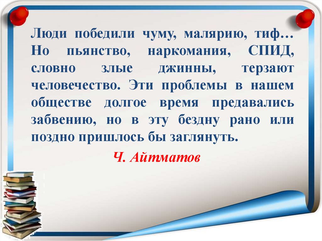 Люди победили чуму, малярию, тиф…Но пьянство, наркомания, СПИД,