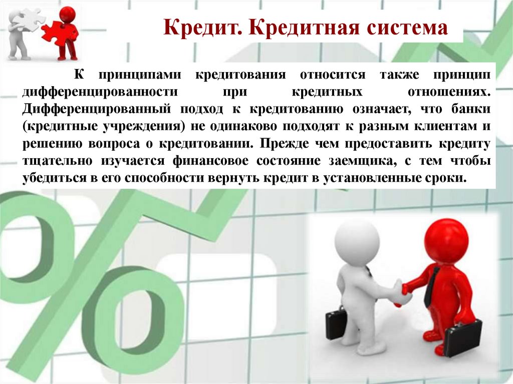 Кредит. Кредитная системаК принципами кредитования относится также принцип