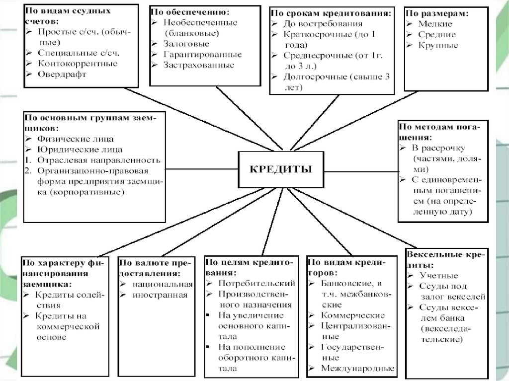Кредиты также различаются по цели, на которую он выдается.Различают:
