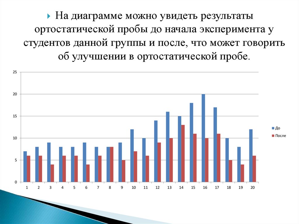 На диаграмме можно увидеть результатыортостатической пробы до начала эксперимента у