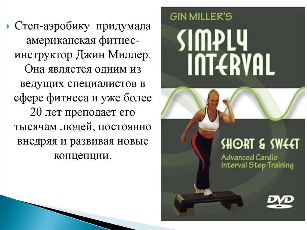 Степ-аэробику придумалаамериканская фитнесинструктор Джин Миллер.