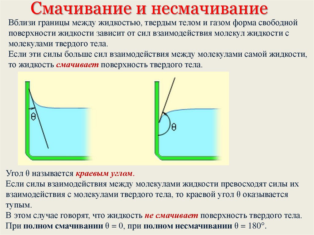 поверхность, нужно преодолеть противодействие молекулярных сил, то