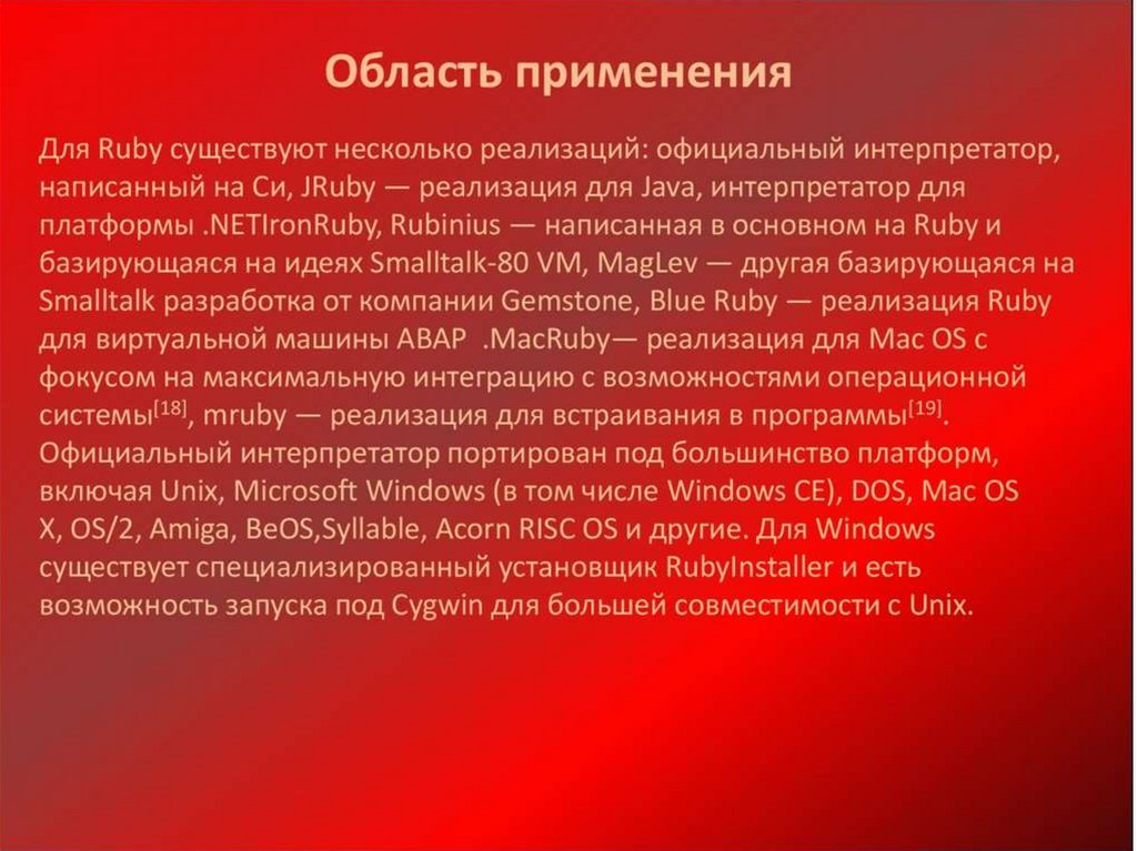 Ruby – объектно-ориентируемый динамический интерпретируемый язык программирование высокого уровня