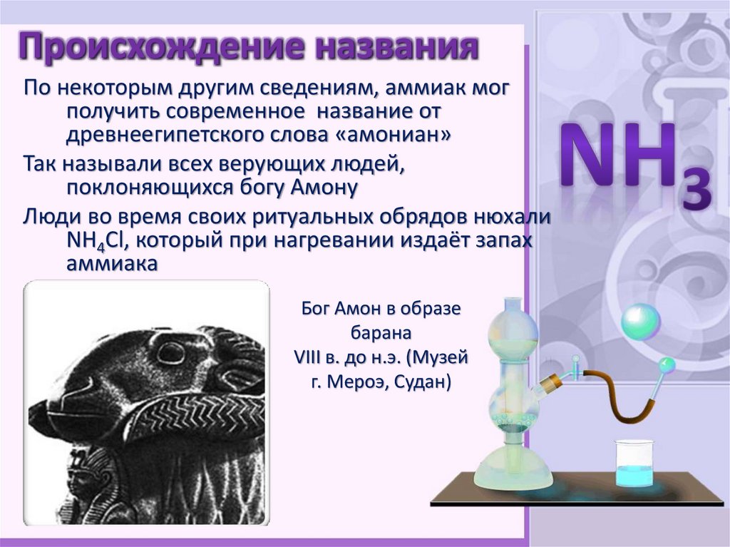 Происхождение названияПо некоторым другим сведениям, аммиак мог