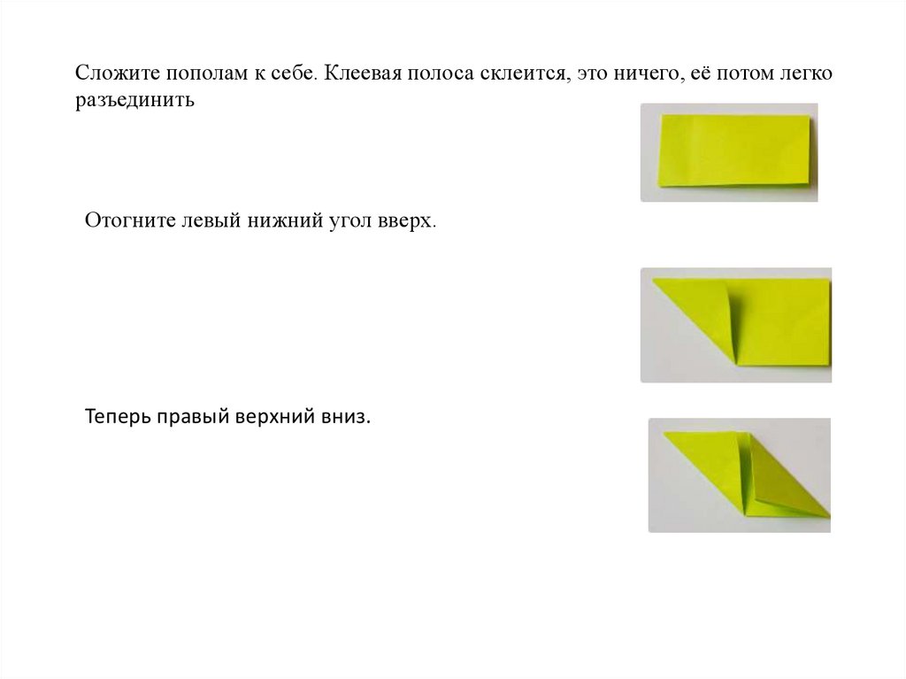 Сложите пополам к себе. Клеевая полоса склеится, это ничего, её потом легкоразъединить