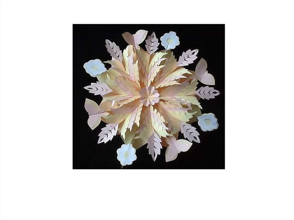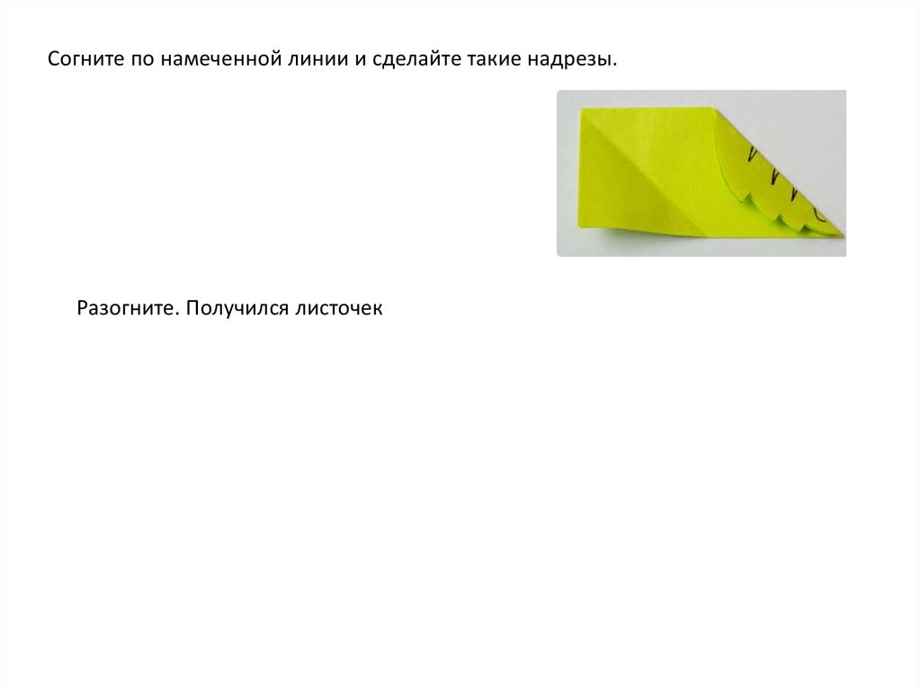 Согните по намеченной линии и сделайте такие надрезы.Разогните. Получился листочек