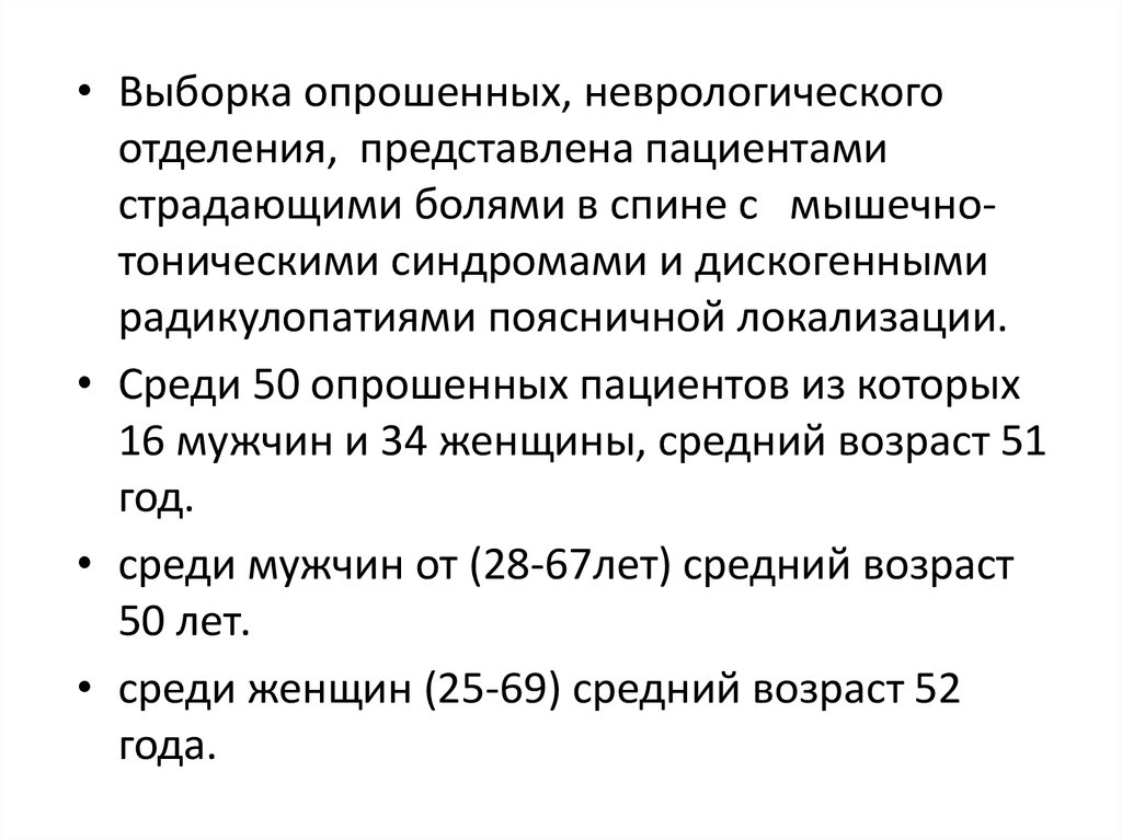 • Выборка опрошенных, неврологическогоотделения, представлена пациентами