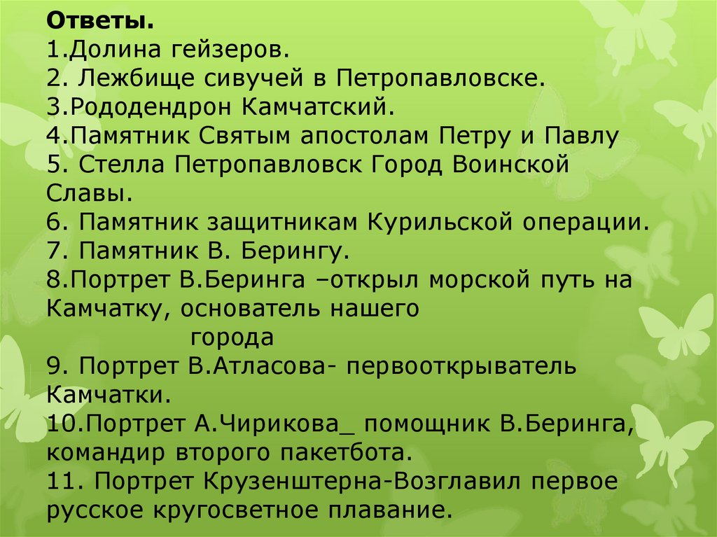 Ответы.1.Долина гейзеров.