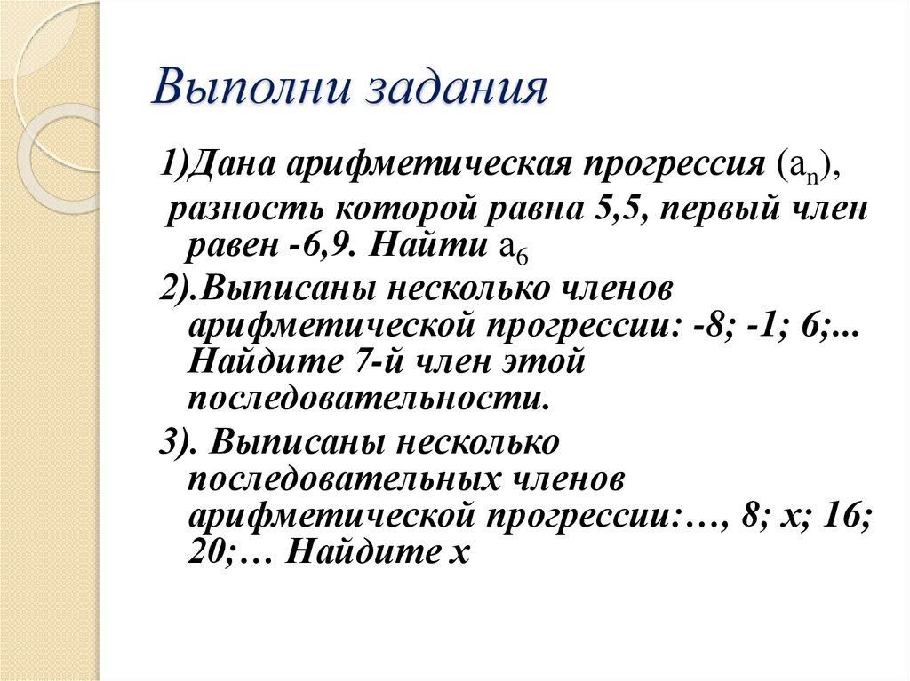 Выполни задания1)Дана арифметическая прогрессия (аn),