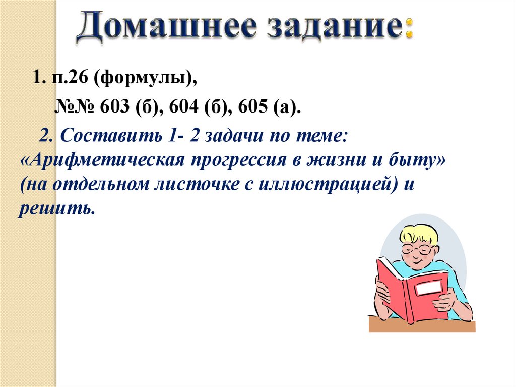 1. п.26 (формулы),№№ 603 (б), 604 (б), 605 (а).