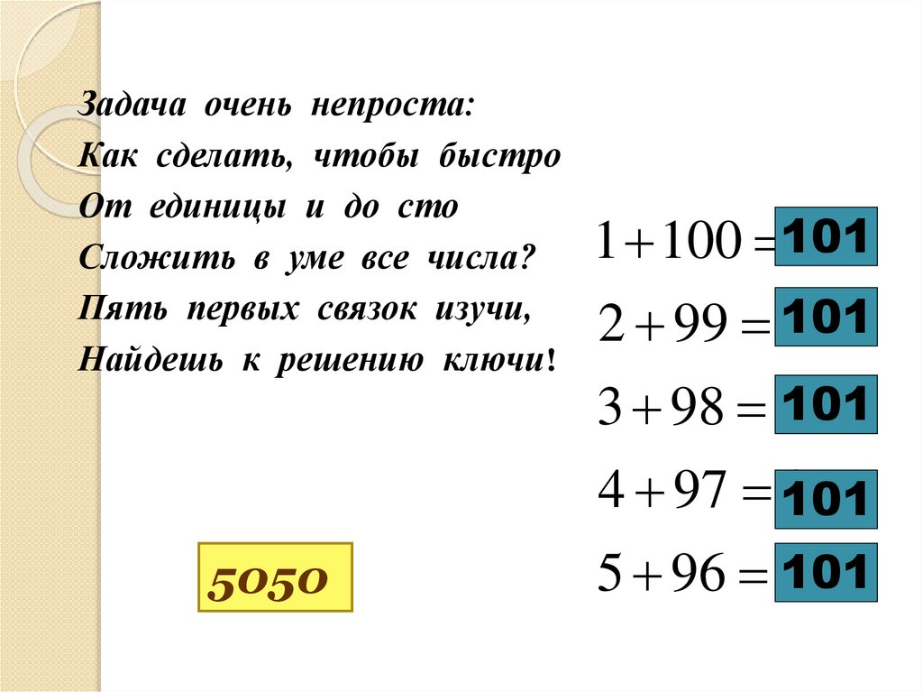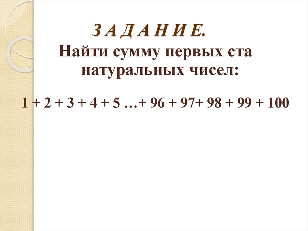Когда ему было 9 лет, учитель задал эту задачу всему