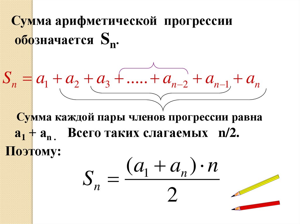 Арифметическая прогрессия. Найти сумму первых ста натуральных чисел