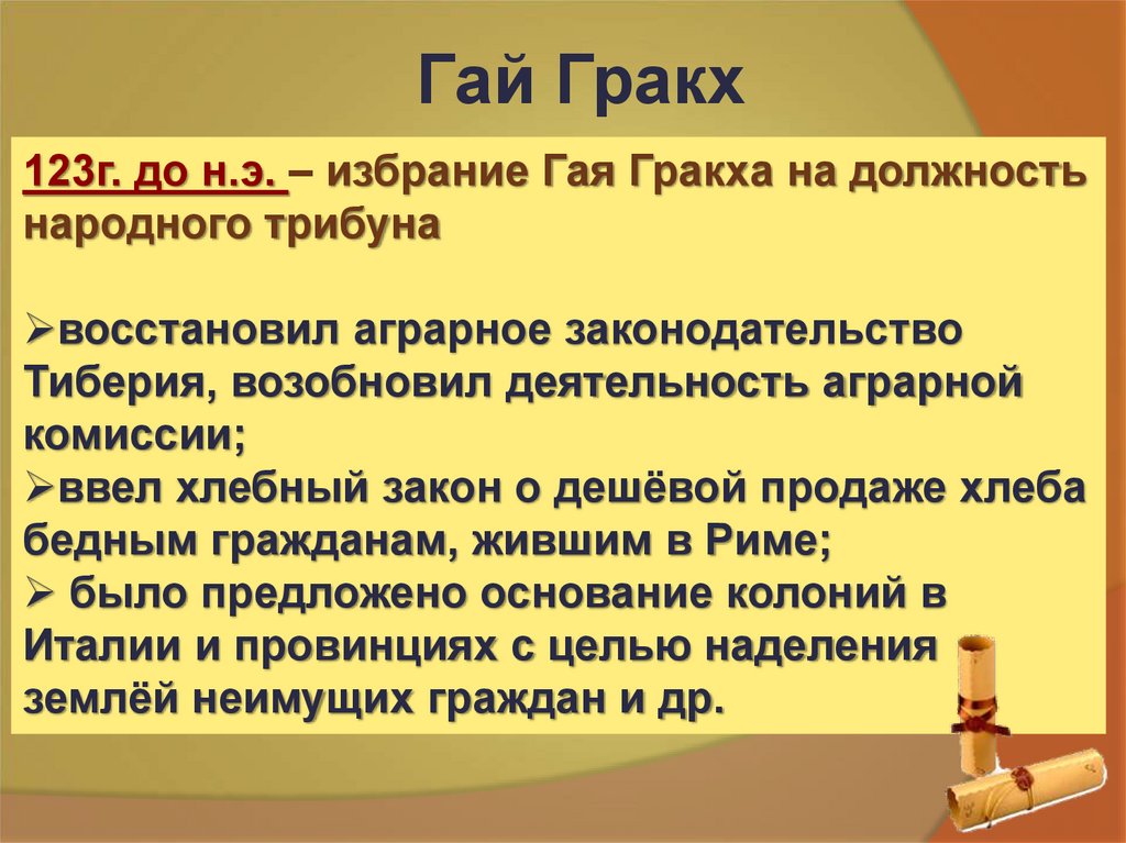 Гай Гракх123г. до н.э. – избрание Гая Гракха на должность