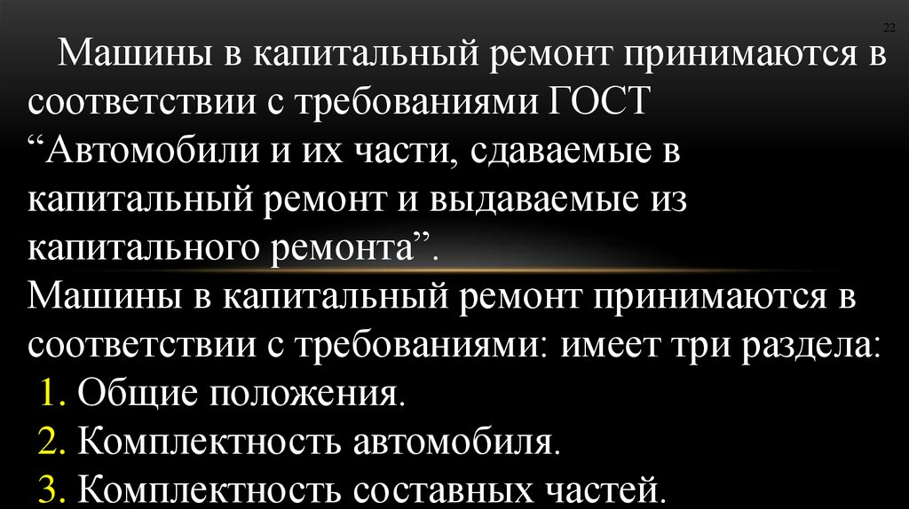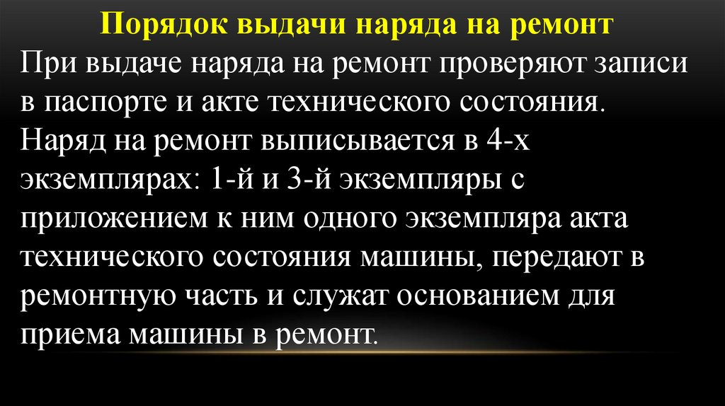 Порядок получения наряда на ремонтМашины, требующие среднего и капитального