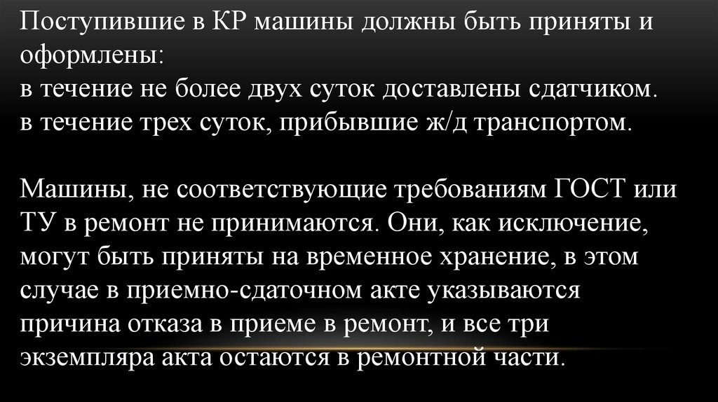 Требования ТУ на сдачу в машин в СРТехнические условия на сдачу машин в СР