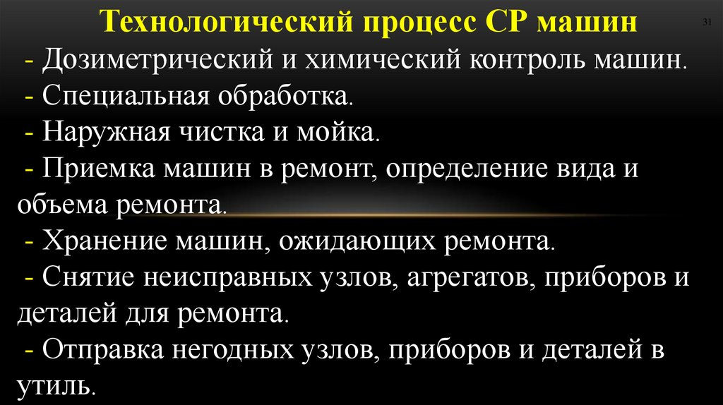 Технологический процесс СР машин- Дозиметрический и химический контроль машин.