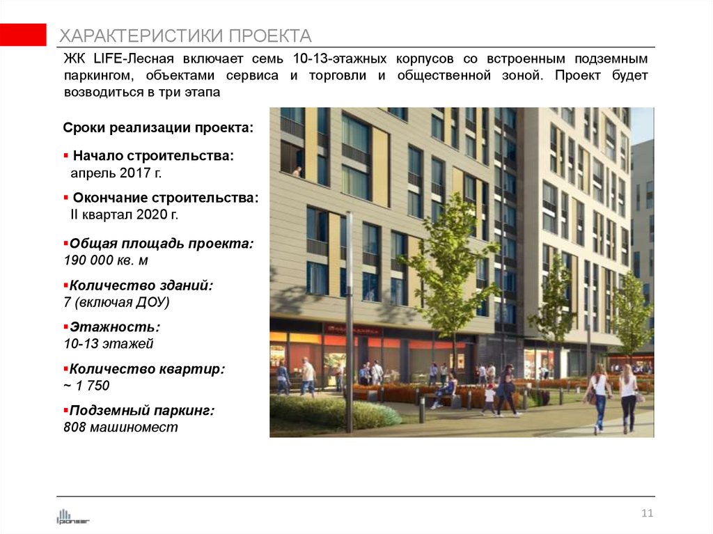 ХАРАКТЕРИСТИКИ ПРОЕКТАЖК LIFE-Лесная включает семь 10-13-этажных корпусов со встроенным подземным