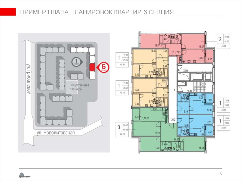 ПРИМЕР ПЛАНА ПЛАНИРОВОК КВАРТИР. 6 СЕКЦИЯ15