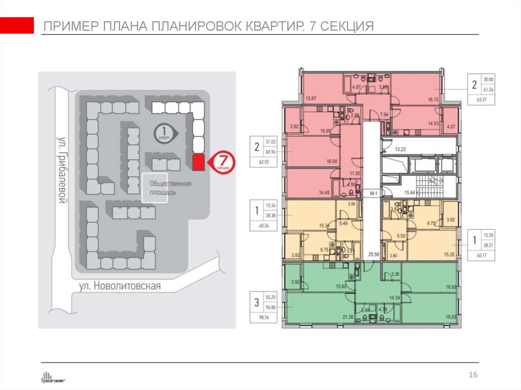ПРИМЕР ПЛАНА ПЛАНИРОВОК КВАРТИР. 7 СЕКЦИЯ16
