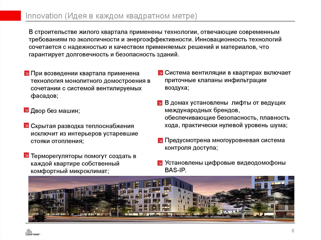 Innovation (Идея в каждом квадратном метре)В строительстве жилого квартала применены технологии, отвечающие современным