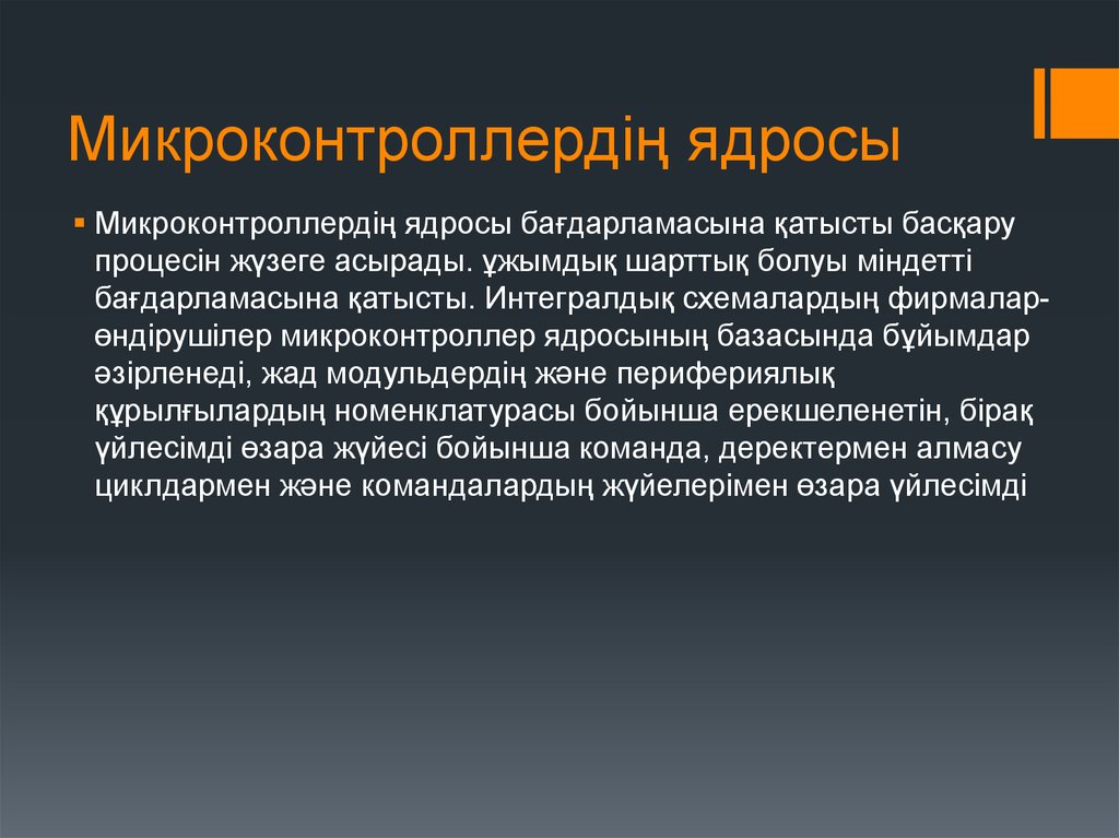 Микроконтроллердің ядросы бағдарламасына қатысты басқарупроцесін жүзеге асырады. ұжымдық шарттық болуы міндетті