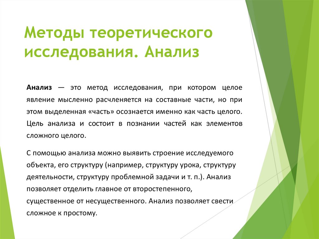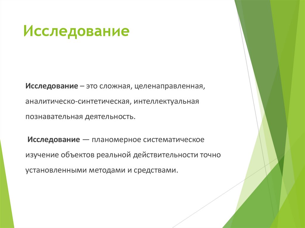 Исследование – это сложная, целенаправленная,аналитическо-синтетическая, интеллектуальная