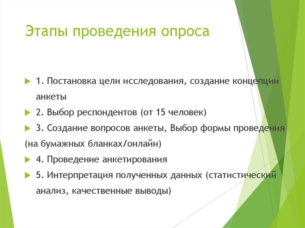 Этапы проведения опроса1. Постановка цели исследования, создание концепции