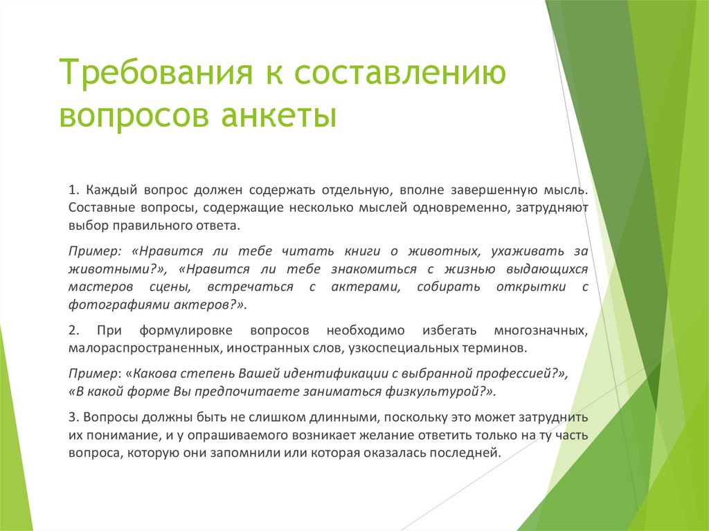 1. Каждый вопрос должен содержать отдельную, вполне завершенную мысль.