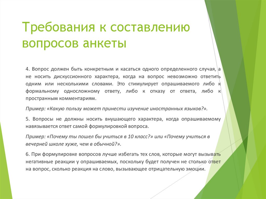 6. При формулировке вопросов лучше избегать тех слов, которые могут вызывать