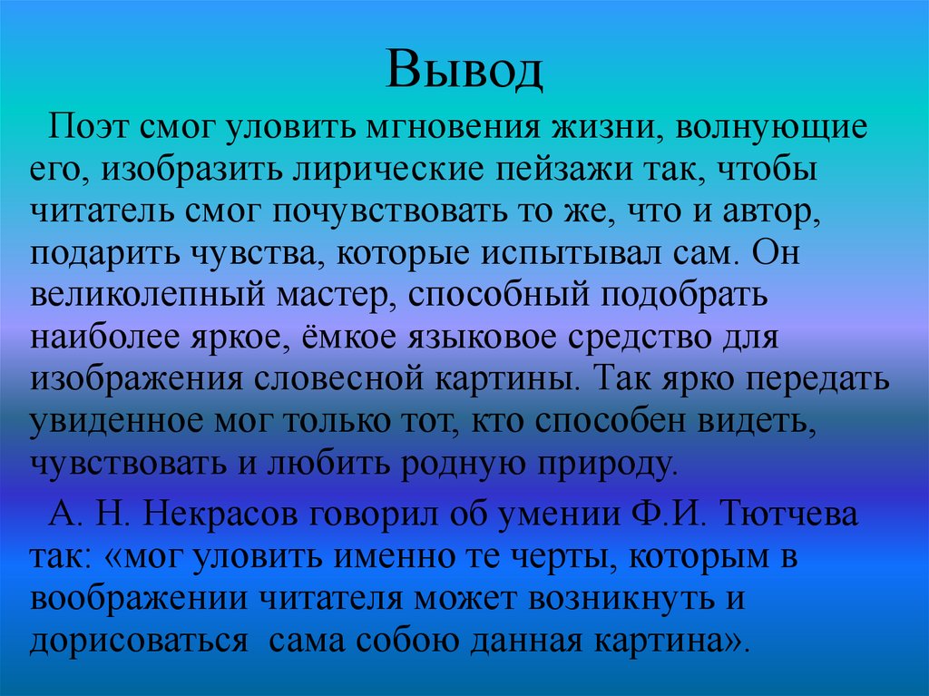 ВыводПоэт смог уловить мгновения жизни, волнующие