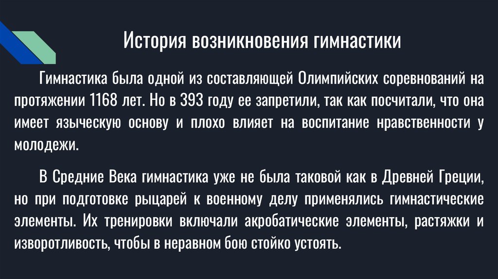 История возникновения гимнастикиГимнастика была одной из составляющей Олимпийских соревнований на