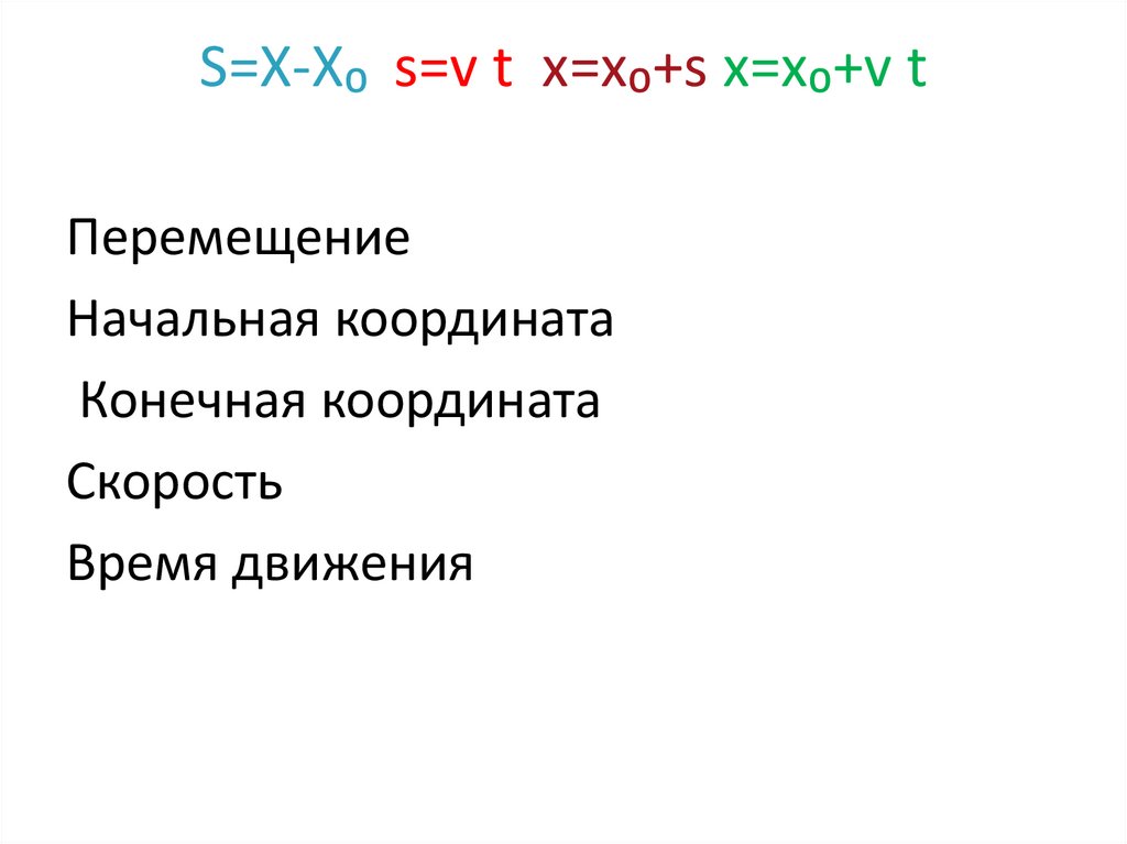 S=X-X₀ s=v t x=x₀+s x=x₀+v tПеремещение