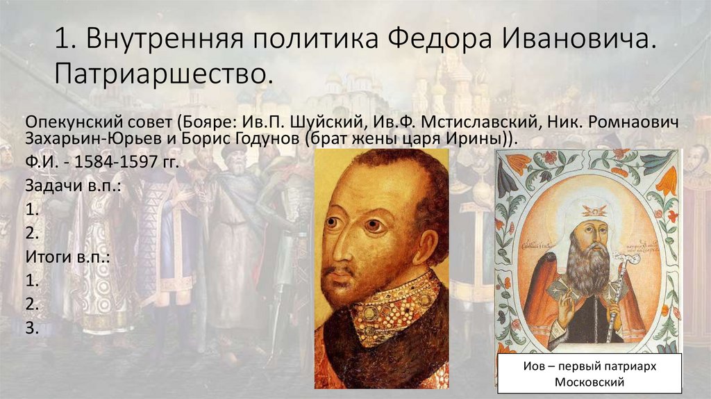 1. Внутренняя политика Федора Ивановича.Патриаршество.