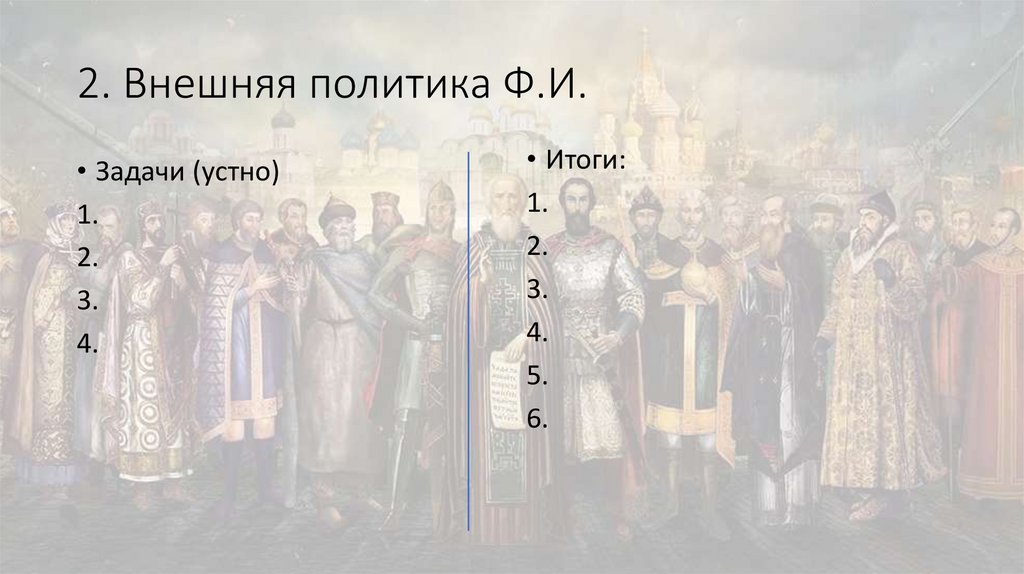 2. Внешняя политика Ф.И.• Задачи (устно)