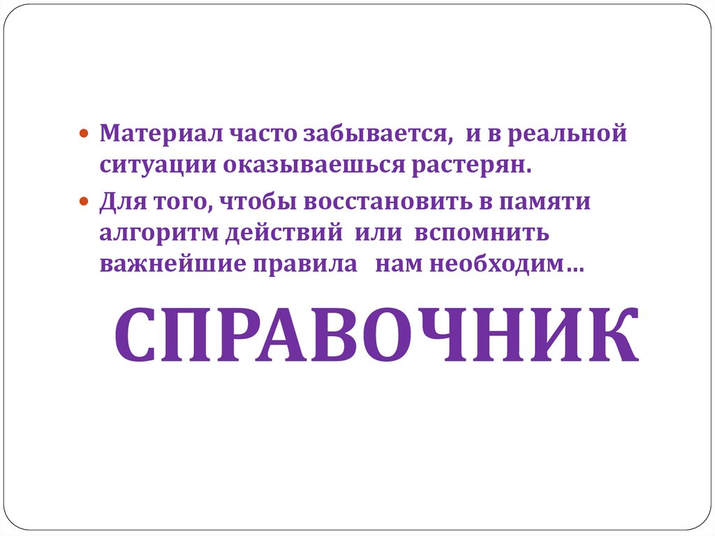 Материал часто забывается, и в реальнойситуации оказываешься растерян.