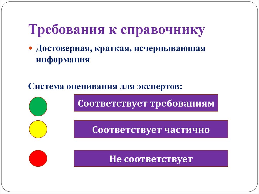 Требования к справочникуДостоверная, краткая, исчерпывающая
