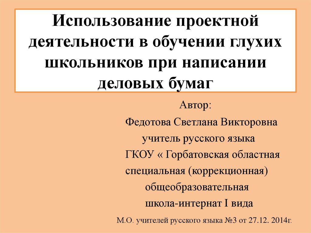 Использование проектной деятельности в обучении глухих школьников при написании деловых бумаг