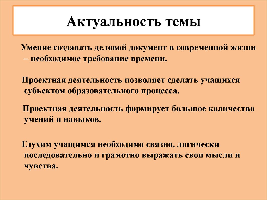 Актуальность темыУмение создавать деловой документ в современной жизни