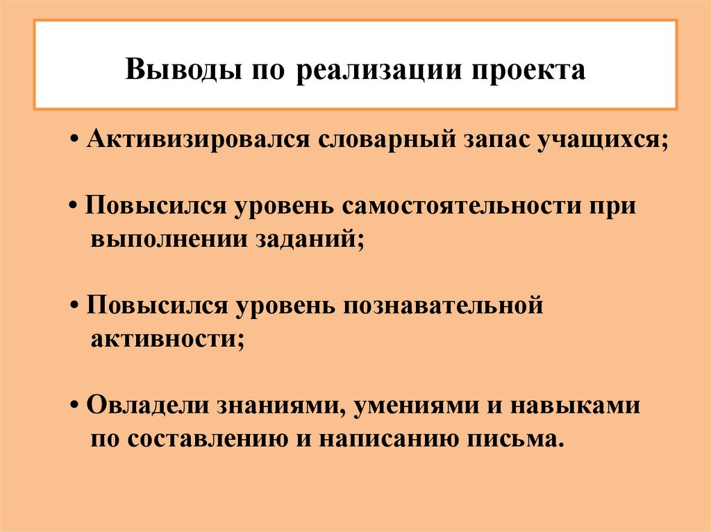 Выводы по реализации проекта• Активизировался словарный запас учащихся;