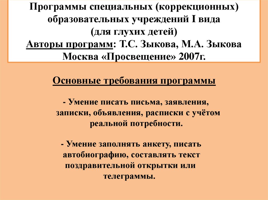 Программы специальных (коррекционных)