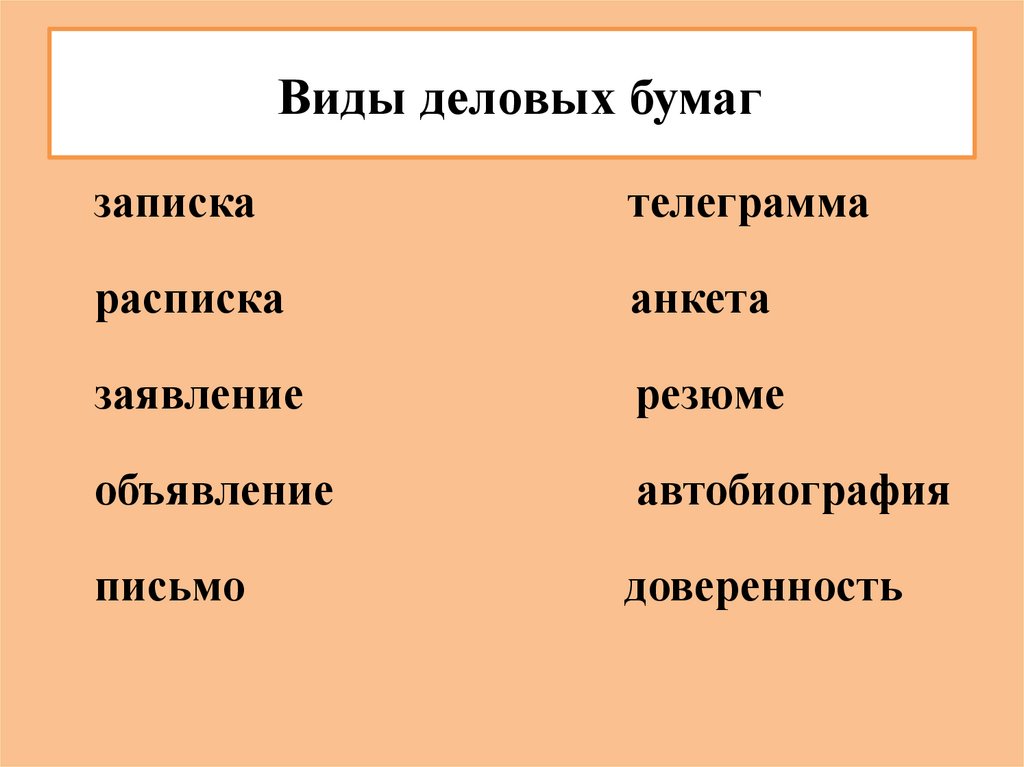 Виды деловых бумагзаписка